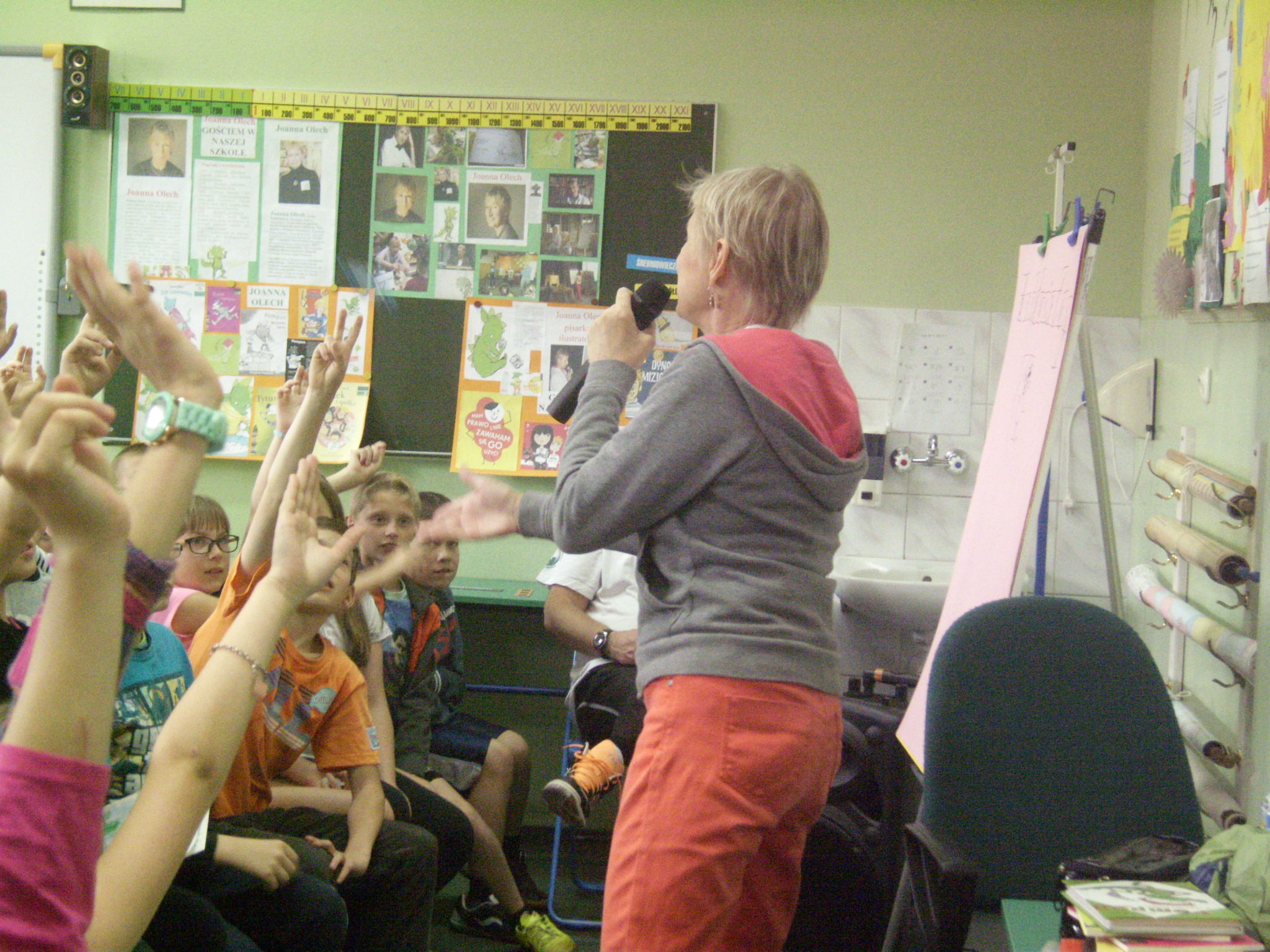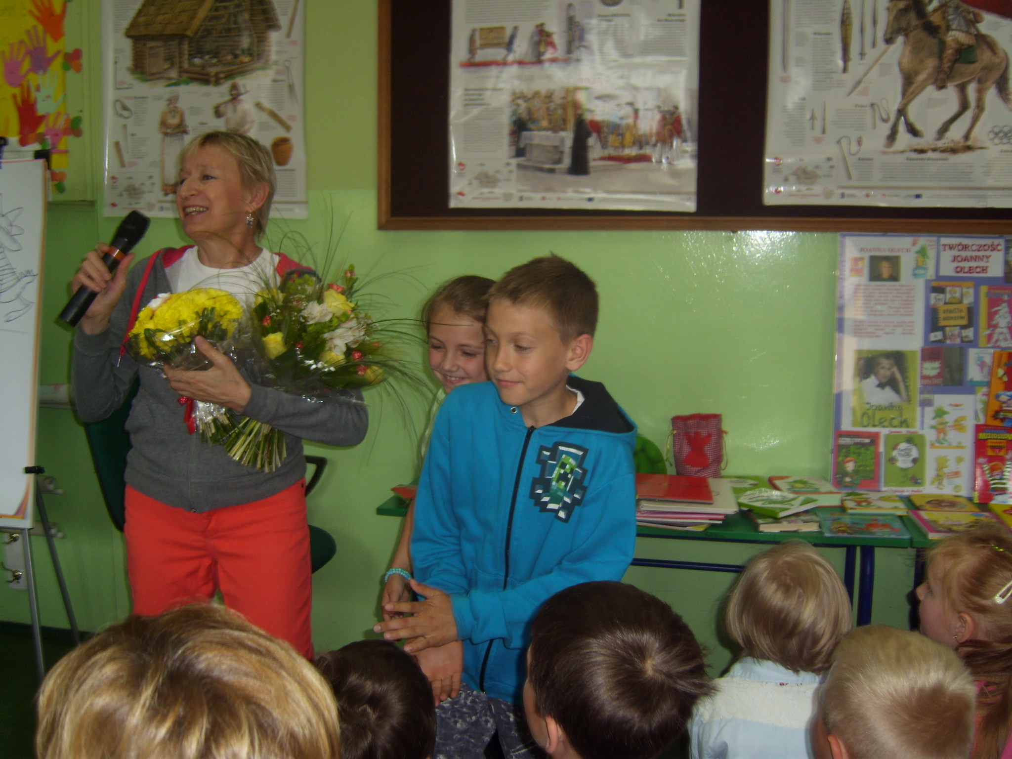 9 czerwca 2015 roku w Publicznej Szkole Podstawowej w Jemielnicy odbyły się dwa spotkania autorskie ze znaną, lubianą pisarką i ilustratorką książek dla dzieci i młodzieży Joanną Olech. Uczestniczyli w nich wszyscy uczniowie naszej szkoły wraz z nauczycielami.