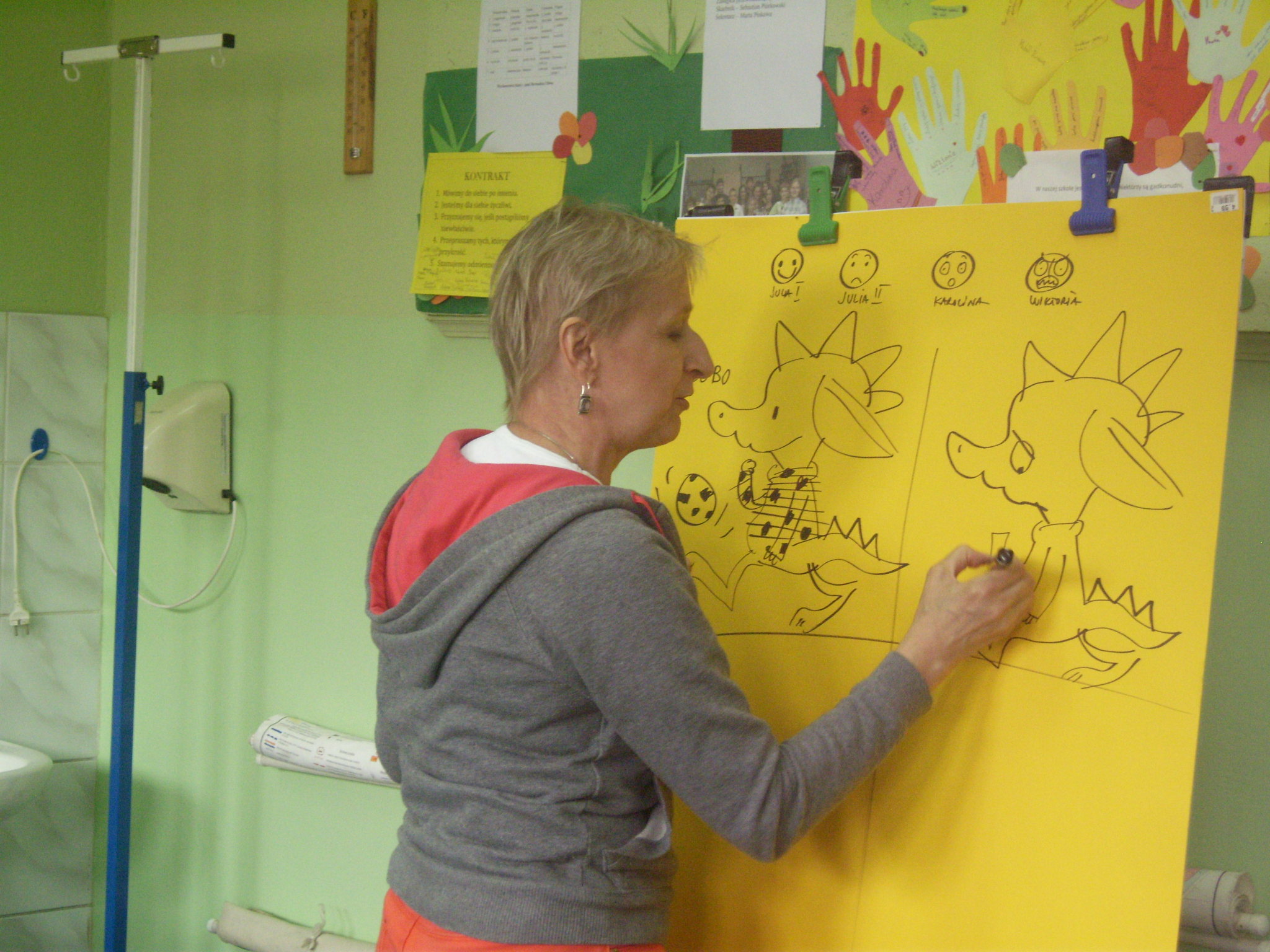 Uczniowie mieli też okazję wykazać się swoją kreatywnością poprzez wymyślanie historii o smokach będących w różnych nastrojach.